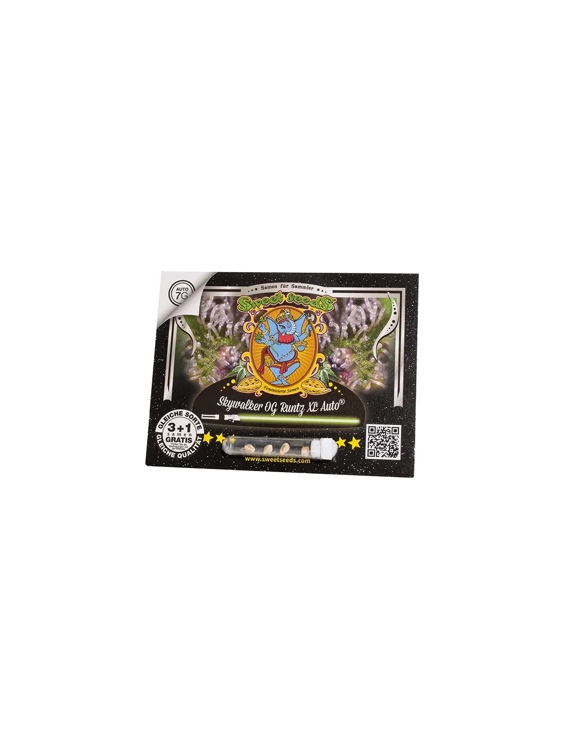 Selbstblühende Sorte der 7. Generation. Selbstblühende Version der Skywalker OG (OG Kush x Skywalker), hauptsächlich Indica, sehr ertragreich, hoch geschätzt an der Westküste der USA; eine ertragsstarke OG Kush. Zur Einsetzung der Autoflowering-Gene haben wir unsere Runtz XL Auto® (SWS88) [Runtz (Zkittlez x Gelato) x Sweet Gelato Auto® (SWS76)] verwendet.